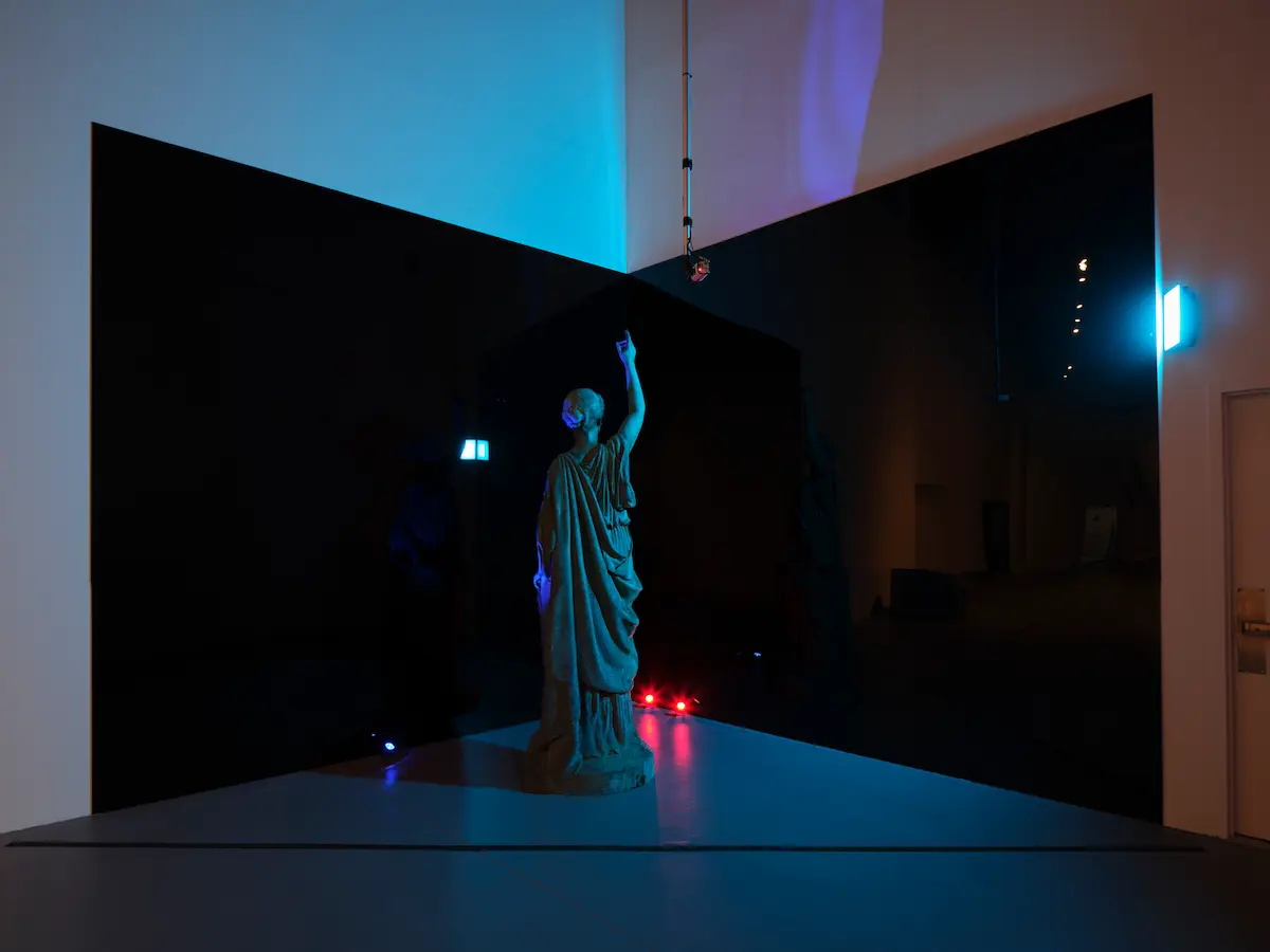 An American Reflection, by Monument Lab is a new commission for the show, and presents a single-channel digital work powered by a series of data cloud visualizations that map the country's sculptural landscape. It is an extension of their National Monument Audit (2021), a response to the States’ ‘monumental reckoning and reimagining’, and offering a more practical way to explore and critique what statues mean today. Offering data-backed insight into US memorials — one key finding being that they disproportionately elevate the Lost Cause above Emancipation and Civil Rights more broadly — the collective’s work also expands beyond the gallery; offering an ongoing ‘Monument Lab Summit’ as part of their output, they affirm the strength of collaboration and collective action in ‘monumaking,’ above and beyond the fixity of it’s subject’s remains.