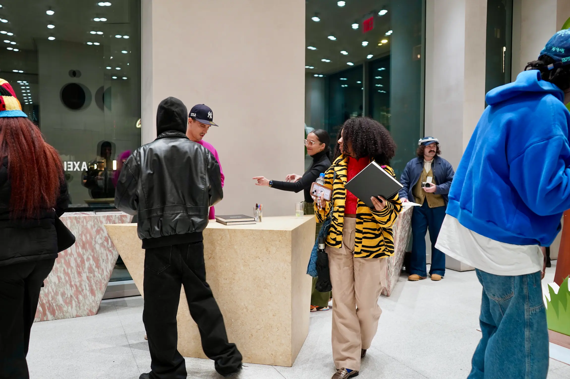 By placing the workshop inside a luxury flagship and treating the floor as a site of live production, fashion became a working surface. The store transformed into a gathering ground where creative labor circulated through exchange and fellowship. By night’s end, sketches and marks had formed a patchwork of origination and expression. Notes, images, and gestures jumped onto social feeds, conversations spilled into the street, and the store’s energy extended into the city as an unmistakable ripple of collaboration.