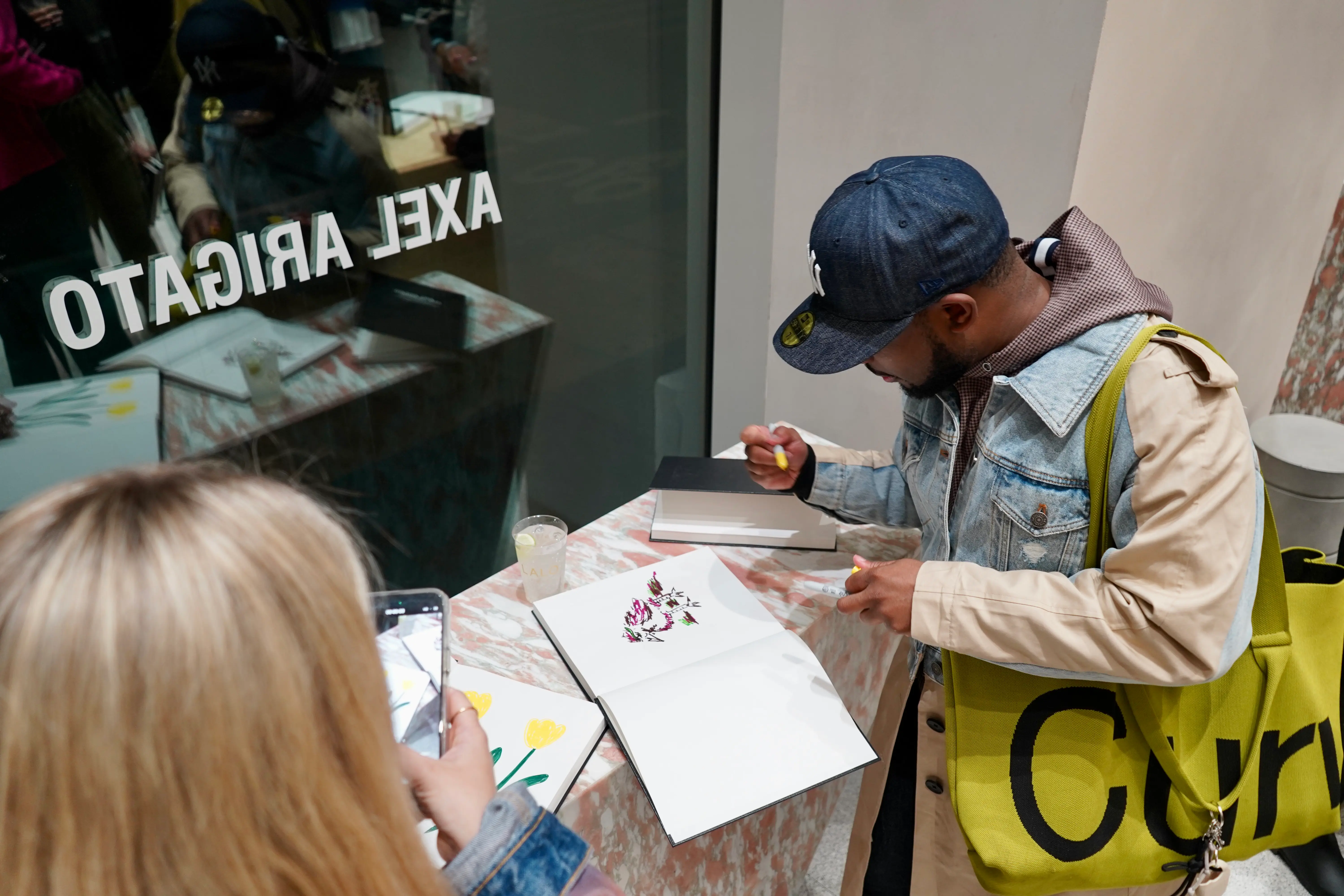 As participants traced lines over prefabricated sketchbooks inspired by the new collection, the room sparked with conversation. In one corner, a duo of designers leaned over to share a technique with a stylist; just feet away, a sous chef’s sketchbook passed from hand to hand for signatures and tags. Every mark became part of a collective rhythm, filling the space with electric energy. This is my kind of jam.