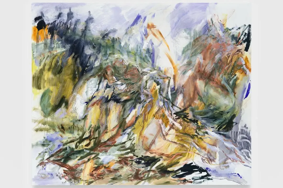The relationship between color, abstraction, and spirituality within the Caribbean context is something I think about often, and it was particularly present in this show. Guyanese-born Frank Bowling and Guadeloupe-born Naomi Lisiki, shown side by side in Root Matter, and Denzil Hurley in Air and Afterlight, embody a presence that understands color as both material and spiritual language. Bowling’s abstraction, often drawn from his Caribbean and South American memories and use of water and saturated pigment, conversed with Lisiki’s intimate explorations of repetition, material, and spirit, both attuned to color as a vessel for ancestral and emotional resonance. Hurley’s deeply yellow-saturated painting, grounded in his Barbadian heritage and his study of mark-making, language, and legibility, carried that same sense of devotion through material. Together, their works revealed how Caribbean abstraction continues to hold space for questions of spirit, belonging, and transcendence, a presence I think of often in the work of Winston Branch of Saint Lucia, Bowling, and Peter Doig who has spent significant time in Trinidad, each negotiating color as a site of memory and revelation.